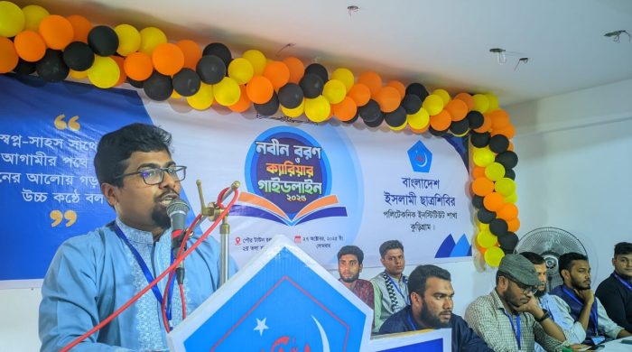 দেশের সর্ববৃহৎ ছাত্রসংগঠন ও শিক্ষার্থীদের আস্থার প্রতিক, বাংলাদেশ ইসলামী ছাত্রশিবির কুড়িগ্রাম পলিটেকনিক ইনস্টিটিউট কর্তৃক আয়োজিত নবীন বরণ ও ক্যারিয়ার গাইড লাইন অনুষ্ঠানে প্রধান অতিথির বক্তব্য রাখেন, সুসংগঠিত ছাত্র সংগঠনের নেতৃত্বদানকারী
